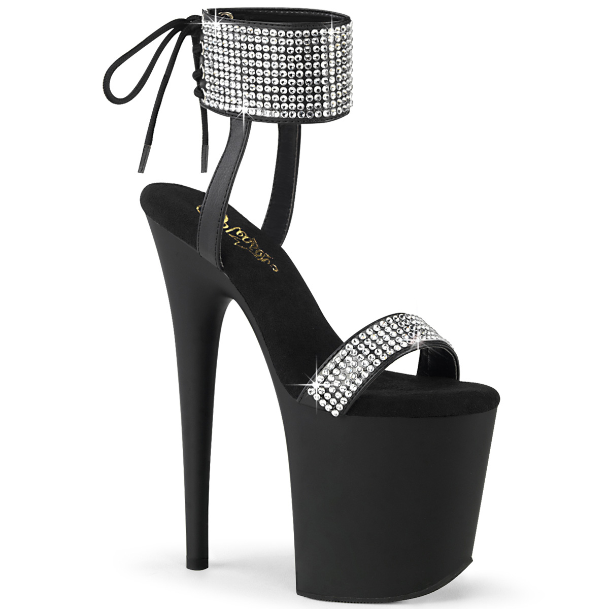 Leatherette rhinestone 20 cm FLAMINGO-870 pleaser high heels with ankle cuff