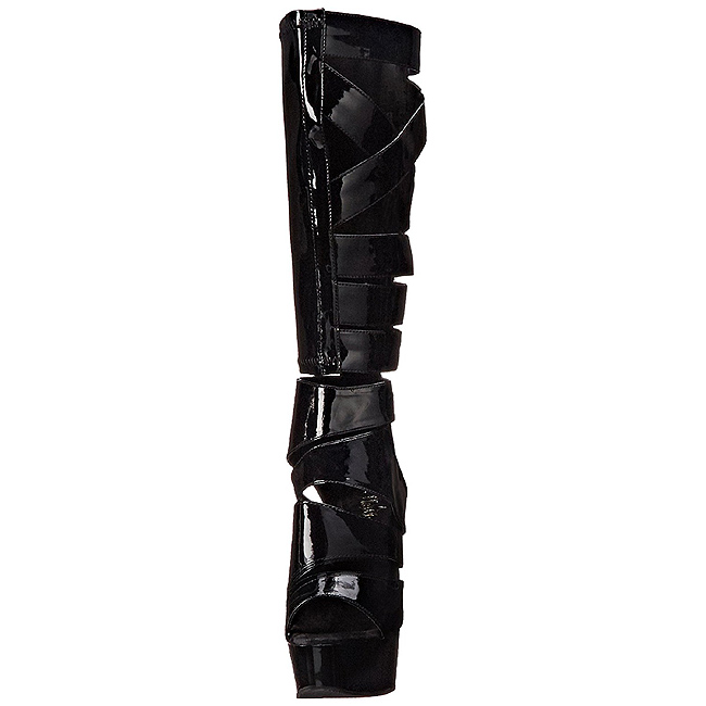 Black Shiny 15 cm DELIGHT-600-49 gladiator womens boots with high heels