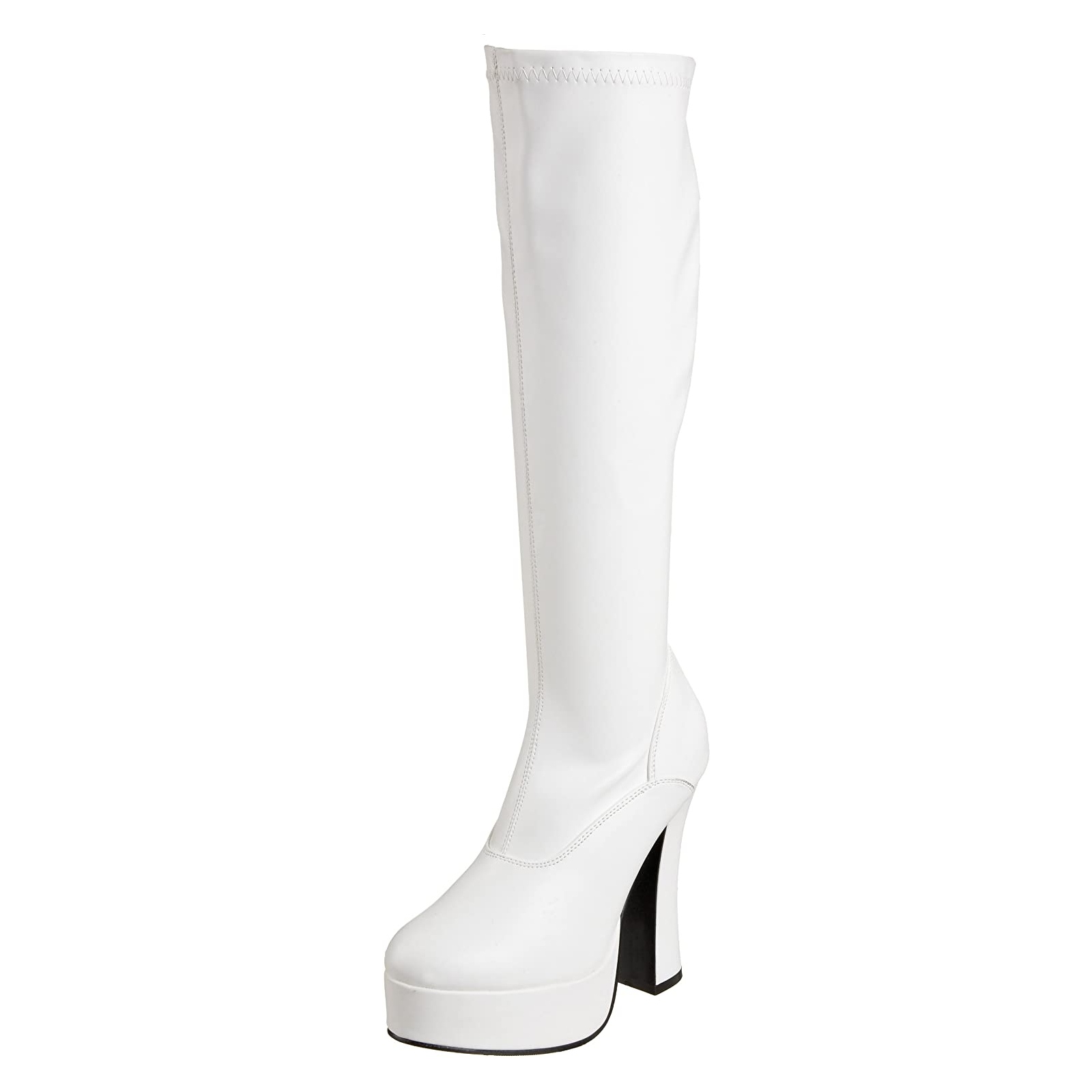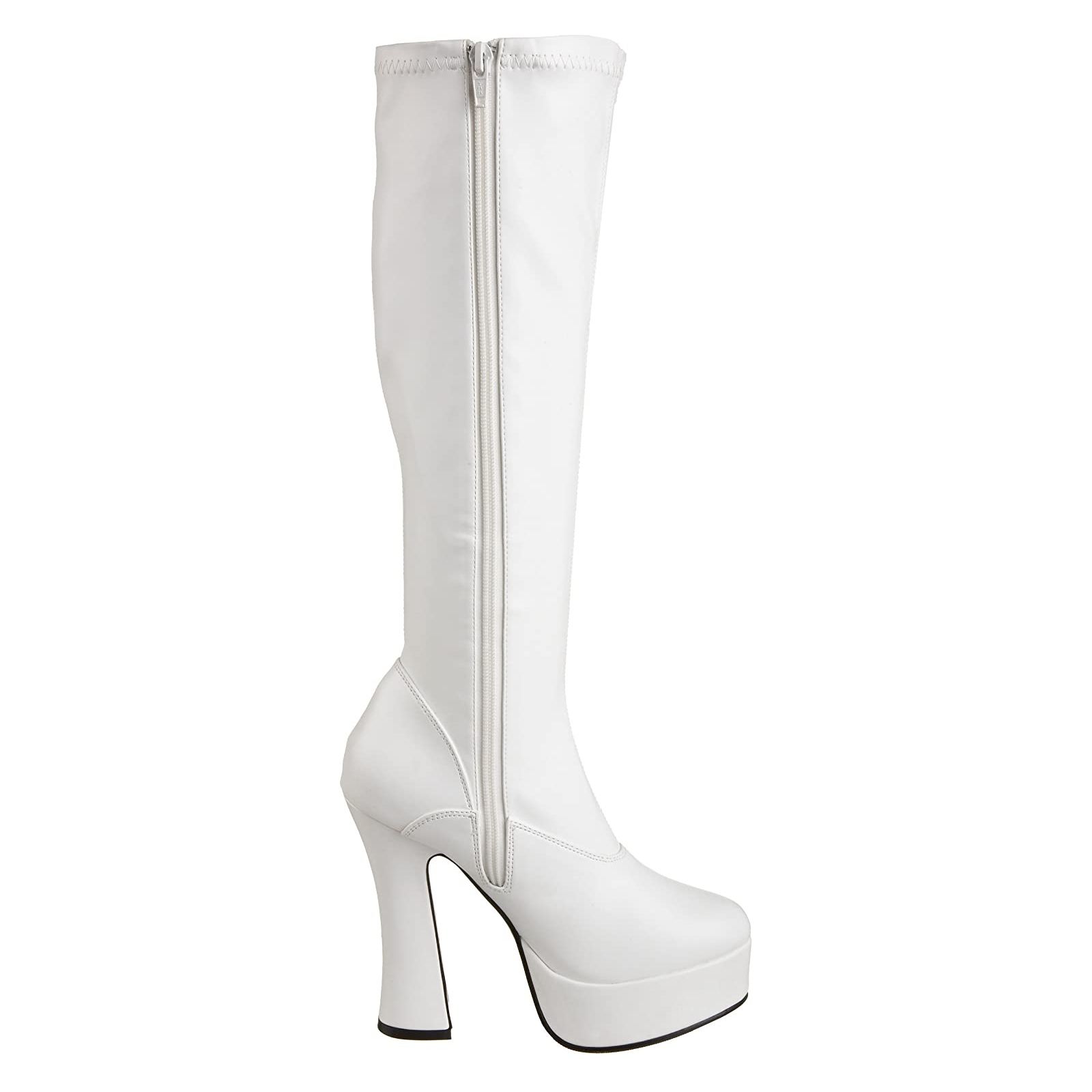 White platform boots vinyl 13 cm - 70s years hippie disco gogo kneeboots chunky
