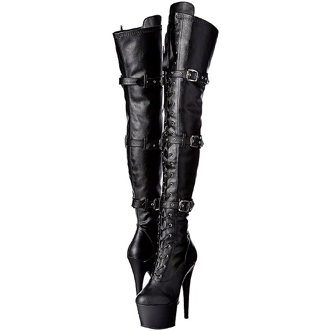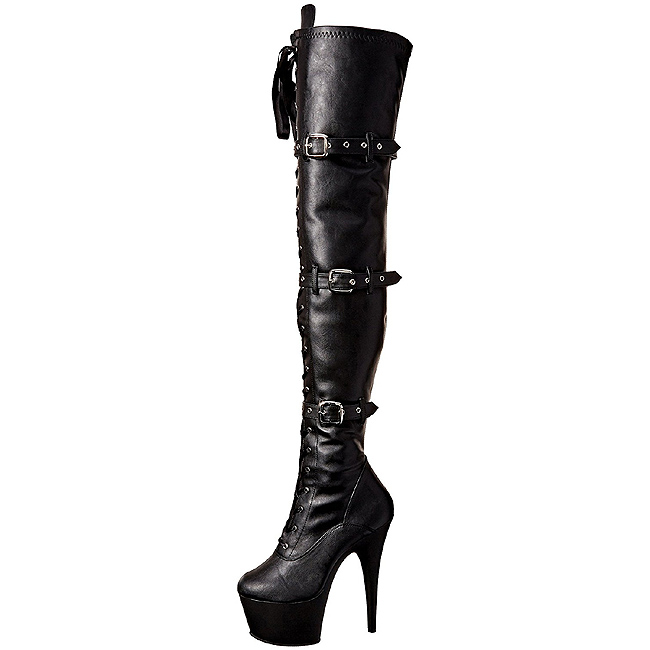 Black Leatherette 18 cm ADORE-3028 Platform Thigh High Boots