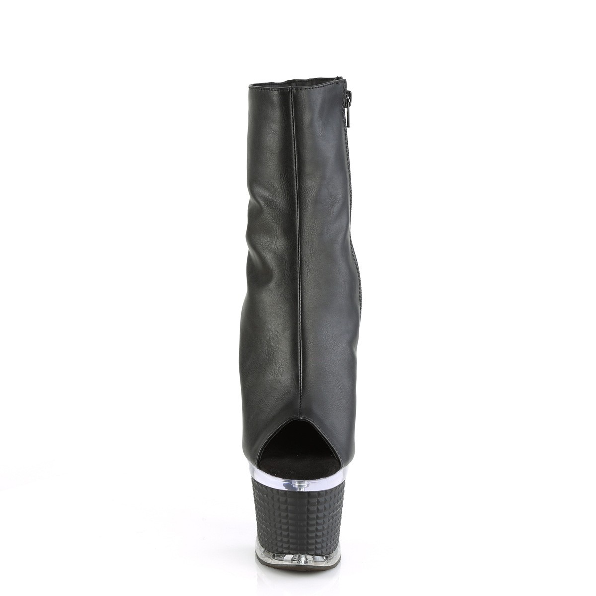 Pleaser - SPEC1012/BPU/C-B - 7 "" (178mm) High Heel Absatz, 3"" (76mm) Schwarze Plateauabsatz, Peep Toe Stiefeletten High Heels Plateausohle mit Strukturierte Pyramiden Form und Acrylglas Rand. Knöchelhohe Stiefeletten für Damen, Rückseite geschlossene Ferse Vorderseite offene Zehenpartie. Das Fussbett ist gepolstert mit Innensohle für hohen Tragekomfort. High Heels Boots, Schwarze Obermaterial gefertigt aus Vegane Vinylleder. Reißverschluss befindet sich Seitlich über die gesamte Schafthöhe. Pleaser Ankle Boots sind mit liebe hergestellt!