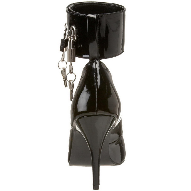 Pleaser - VAN434/B - 4"" (10,2 cm) lav hæl, damepumps for enhver anledning! Patentpumper med låsbare ankelmansjetter, klassiske pumps, lave høye hæler og flat såle. Bak lukket hæl Fremre spiss tå. Fotsengen er polstret med en innersåle for høy komfort. Damepumper med hengelås på ankelstroppen, svart overdel laget av skinnende lakk. Pleaser sko er laget med kjærlighet!