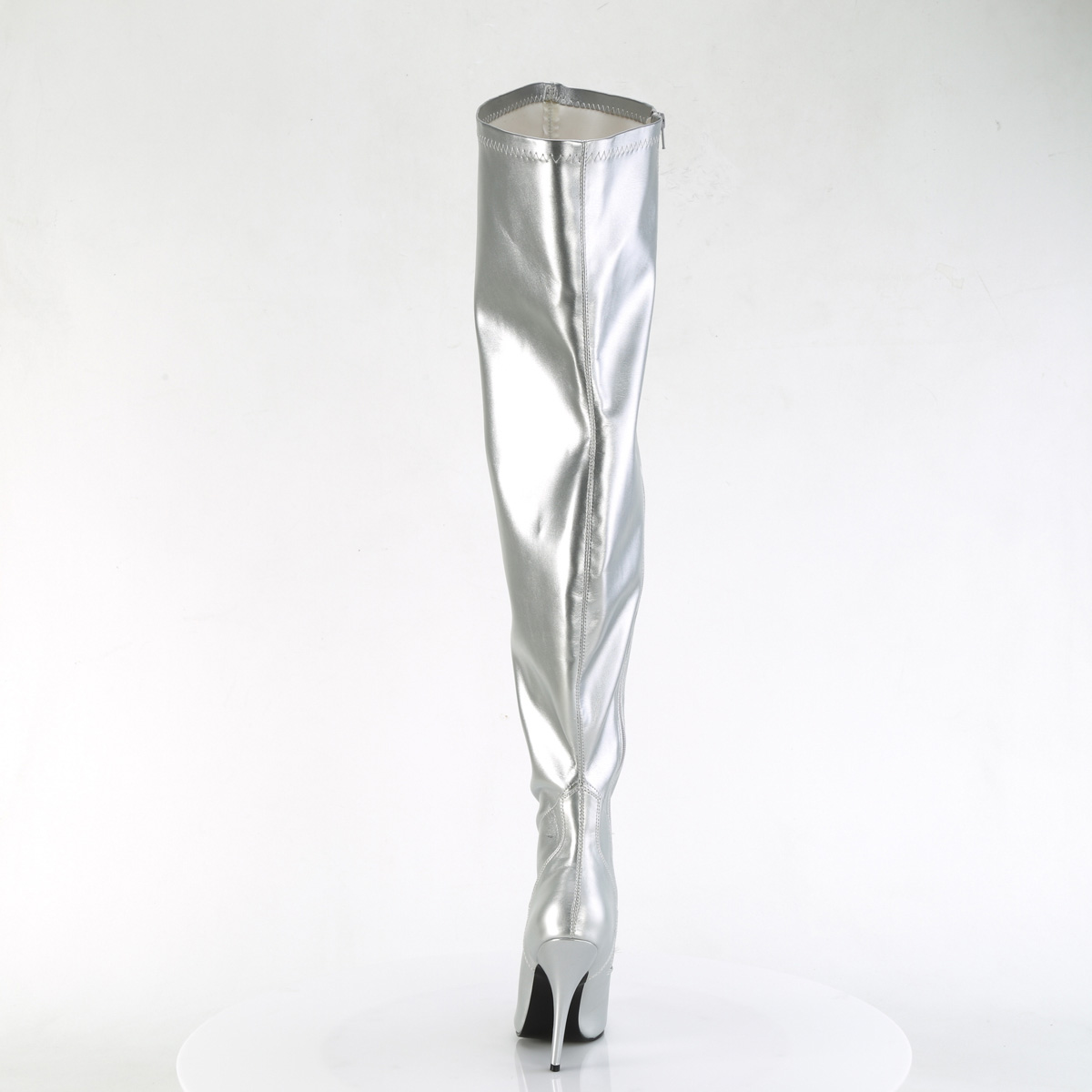 sølv 13 cm stretch lårhøye støvler til brede lægge til menn
